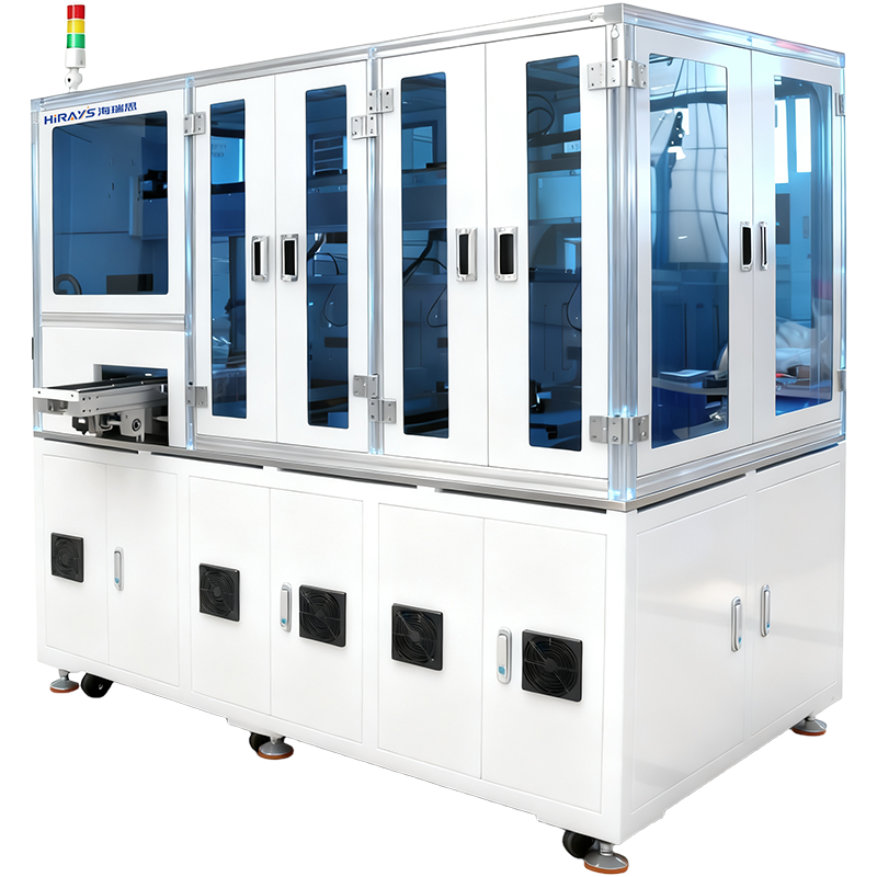 海瑞思電池漏液VOC/質(zhì)譜檢漏自動(dòng)化檢測(cè)平臺(tái),采用機(jī)械手+進(jìn)出滑臺(tái)設(shè)計(jì),適用于鋰電池漏液自動(dòng)化測(cè)試,直通率可達(dá)100%,可與前后工位自動(dòng)化設(shè)備連接,UPH由電池體積大小、一次可以擺放多少個(gè)決定。