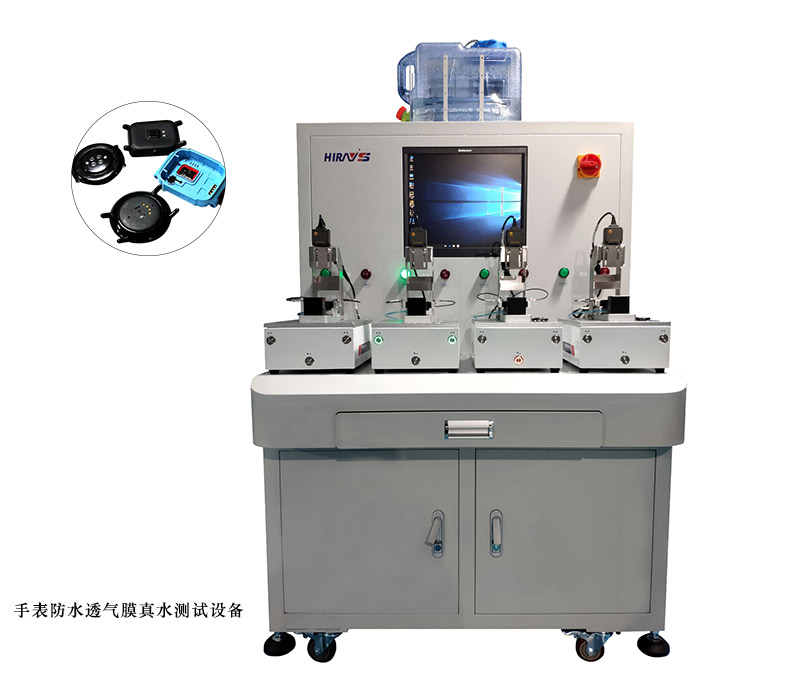 客戶要求測試手表后殼防水透氣膜的防水性能,要求不能漏水,但是又必須透氣。海瑞思科技選擇了以下的設(shè)備及方法: