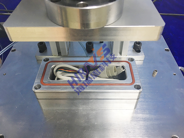 啟動(dòng)檢測(cè)后,氣密性檢測(cè)設(shè)備的精密壓力傳感器開始工作,嚴(yán)格的監(jiān)控模具內(nèi)的氣壓變化,把檢測(cè)氣壓控制在一定的范圍內(nèi),在線材可承受的壓力下完成檢測(cè)。最后經(jīng)過一系列的運(yùn)算就可以得出氣體的泄漏值,根據(jù)泄漏值檢測(cè)出線材的氣密性能和IP防水等級(jí)。以下是檢測(cè)細(xì)節(jié)展示。